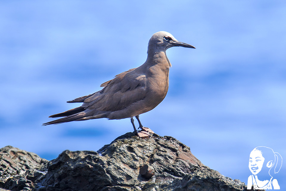 就當我打算要離去時,這時看到遠方來了一位鳥友,原來是久違的鳥友趙大哥,真是太巧了,他指點了玄燕鷗的出現點後,我小心翼翼走過去等等,運氣不錯的,順利紀錄到在台灣算是稀有夏候鳥的玄燕鷗 (其在澎湖是局部普遍的夏候鳥,主要繁殖於貓嶼及少數離島)。玄燕鷗,屬於鷗科的飛羽,棲息於熱帶及亞熱帶地區島嶼或海岸的礁石或峭壁上,全身大致為暗褐色,額制前頭銀白色,有不完整的白色眼圈。