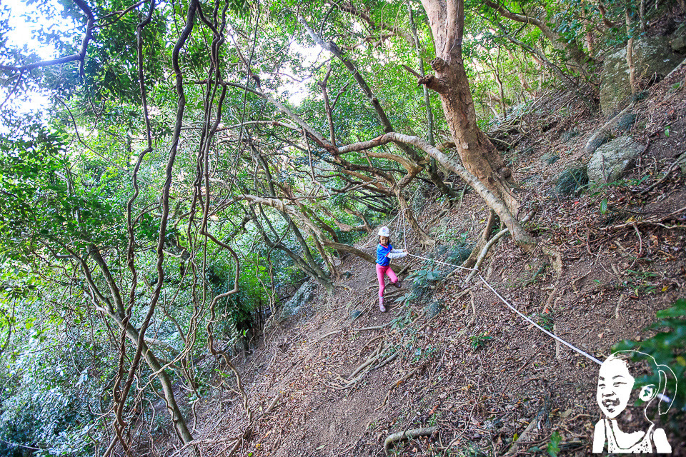 繼續往上走,步道坡度轉陡峭,不過有拉繩還算好走